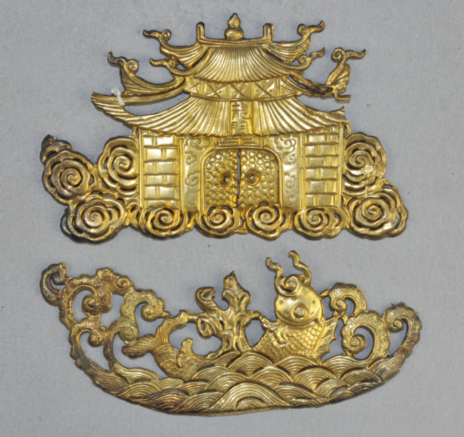 清雕鲤鱼跳龙门鎏金银嵌饰